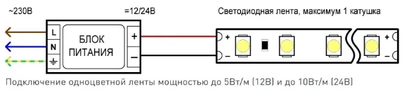 1. Определите напряжение светодиодной ленты. Обычно это 12V или 24V.