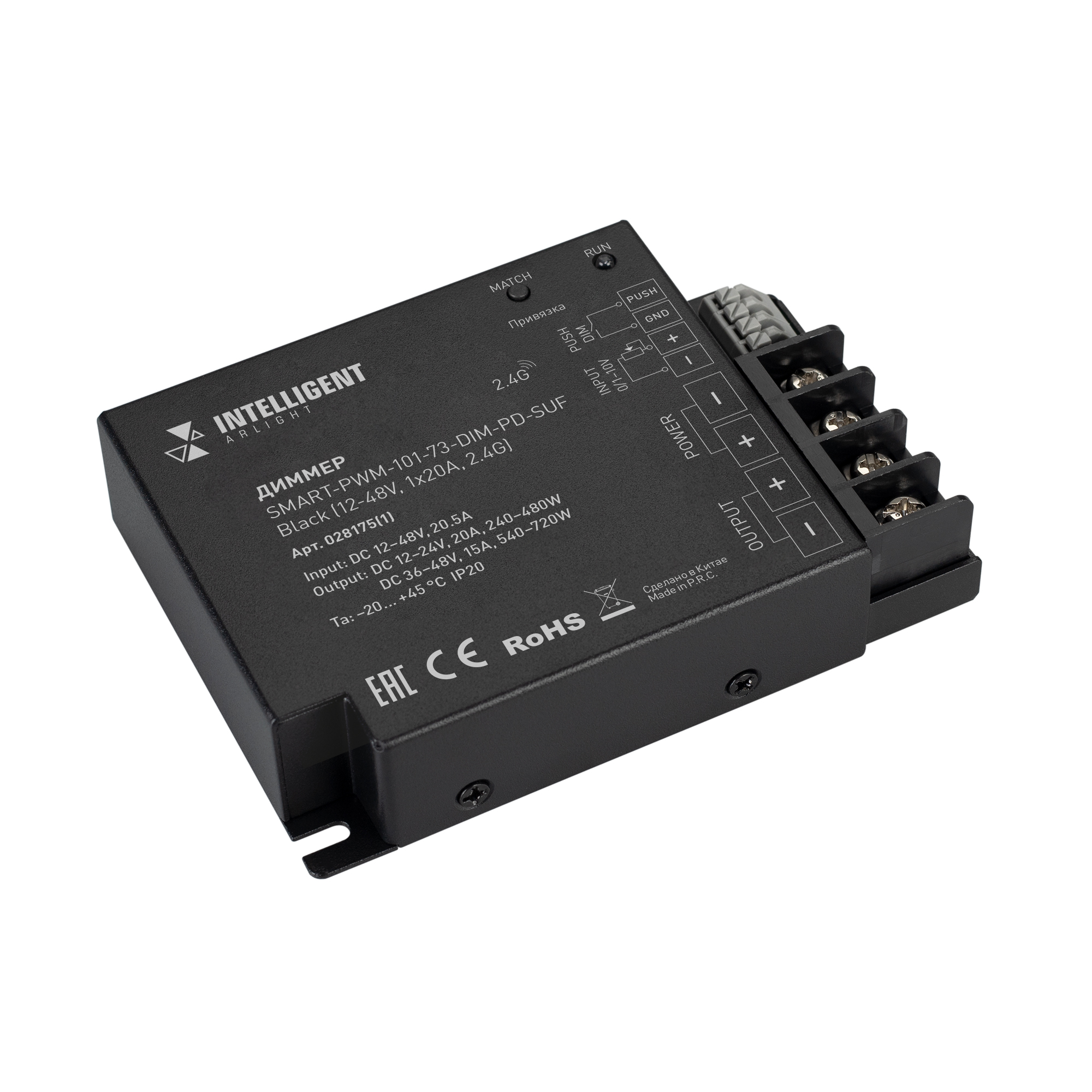 INTELLIGENT ARLIGHT Диммер SMART-PWM-101-73-DIM-PD-SUF Black (12-48V, 1x20A, 2.4G) (IARL, IP20 Металл, 5 лет) 028175(1) в Новороссийске