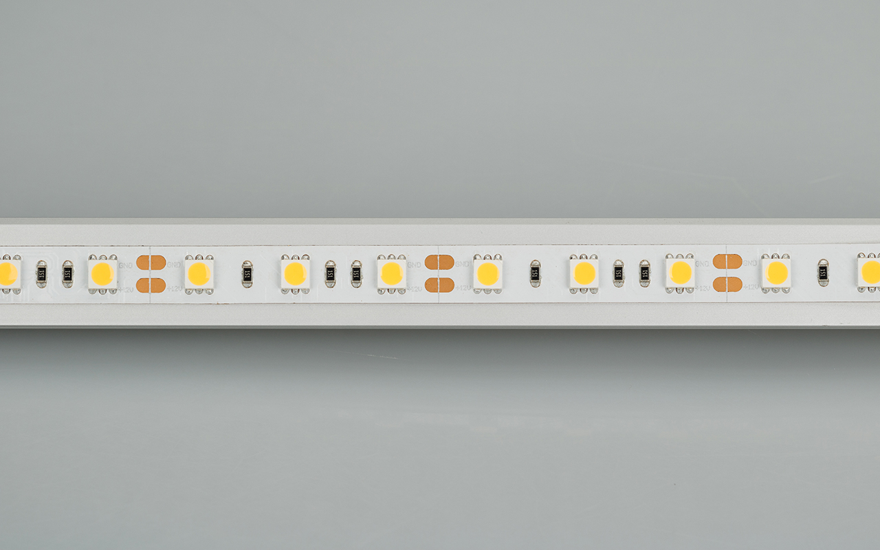 Гибкая лента Norm, светодиоды smd 5060, 60шт/м (300шт на 5м), белая плата 10мм, скотч 3М. Цвет БЕЛЫЙ 5800-6500K. Питание 12V, мощность 14.4 Вт/м (72 Вт на 5м), угол 120°, цветопередача CRI>80. Размеры 5000х10x2.2мм. Мин.отрезок 50мм, 3 шт светодиода. Пакет 5м. Цена за 1м.