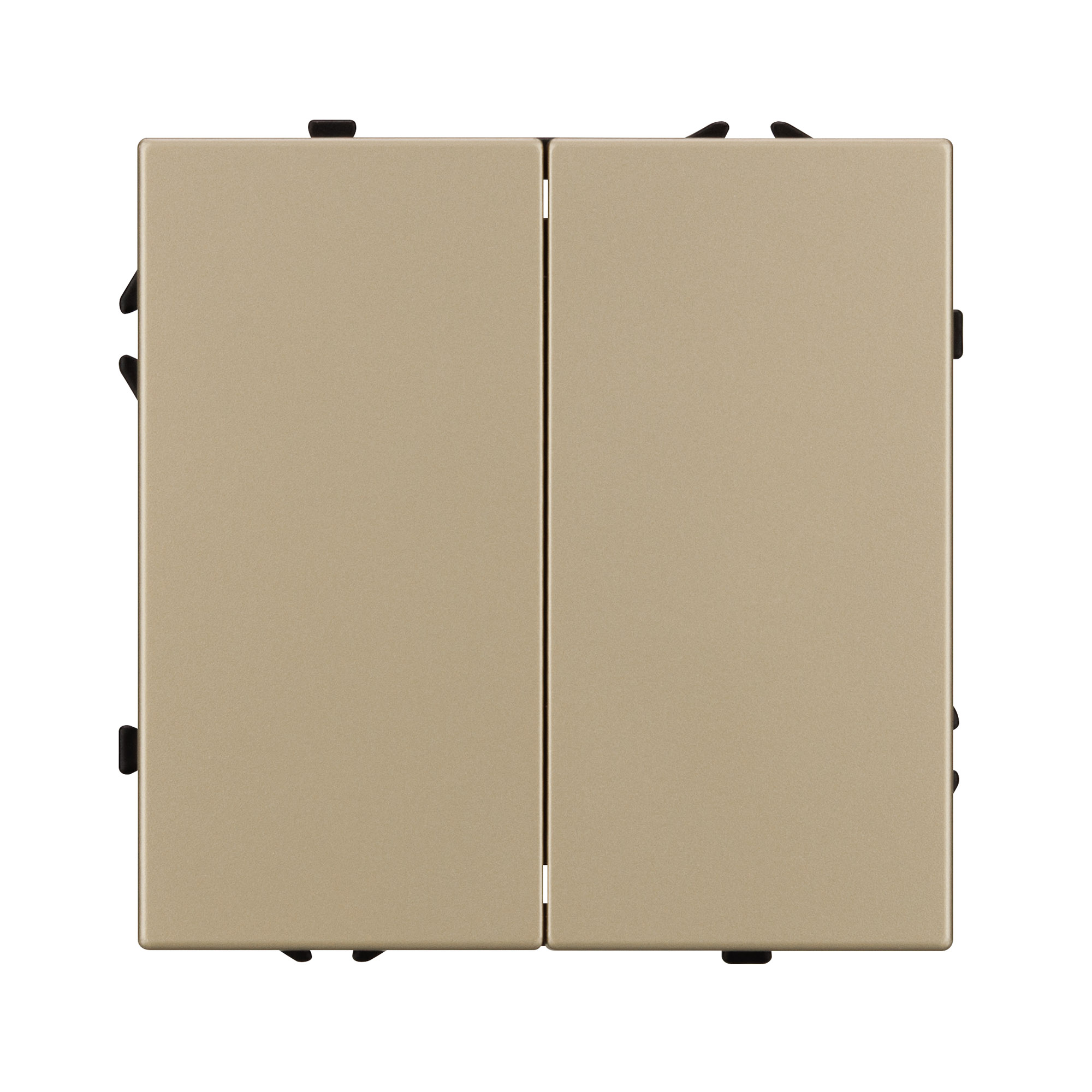 Механизм выключателя света клавишный на 1 пост 2 клавиши (непроходной). Цвет - золотой, с Soft-Touch покрытием. Без фронтальной рамки. Уровень пылевлагозащиты IP20. Выключатель устанавливается в стандартный круглый подрозетник круглого сечения диаметром 60мм.