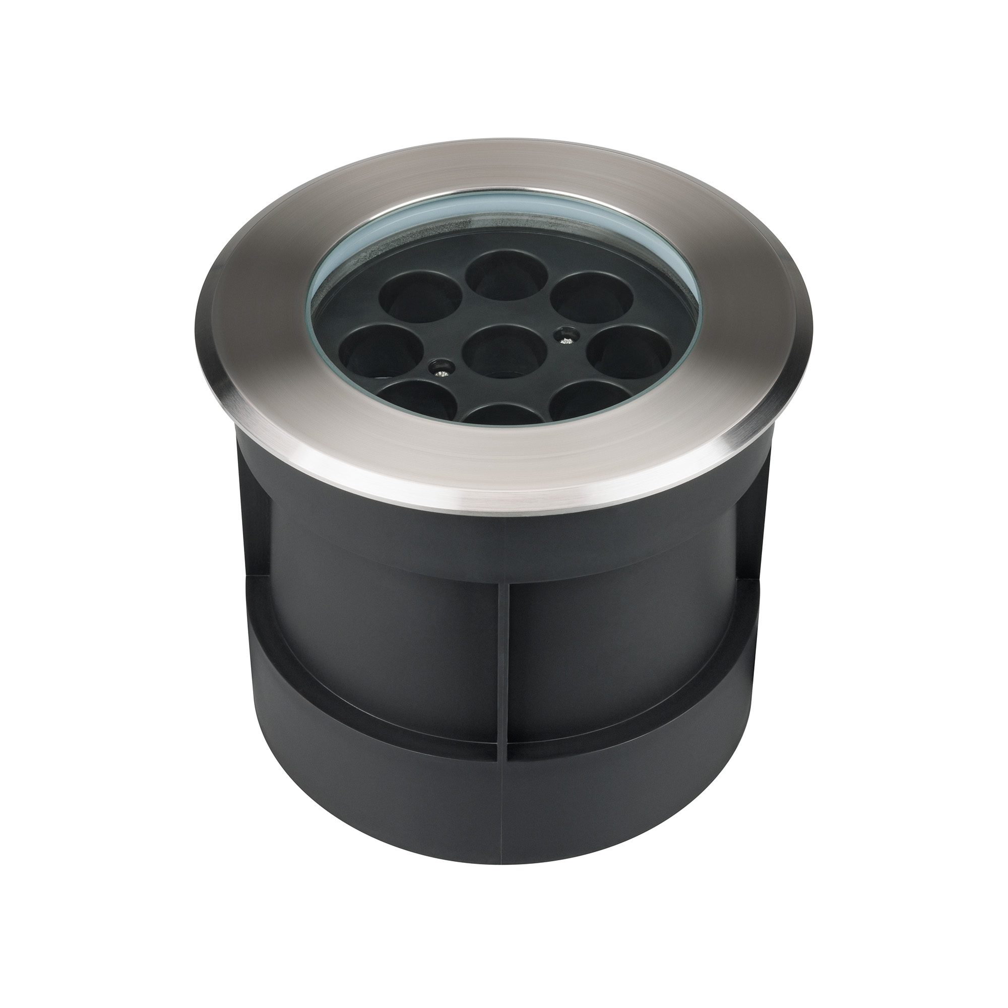 Встраиваемый светодиодный светильник для грунта и пола. Мощность 16Вт, световой поток 1440 лм, цвет теплый 3000К. CRI(Ra)>80, угол 35°. Круглый влагозащищенный корпус IP67, нержавеющая сталь. Экран закалённое стекло. Питание 230В, 16Вт. Размер DxH Ø160x135мм. Установка в отверстие DxH Ø146x130мм.
