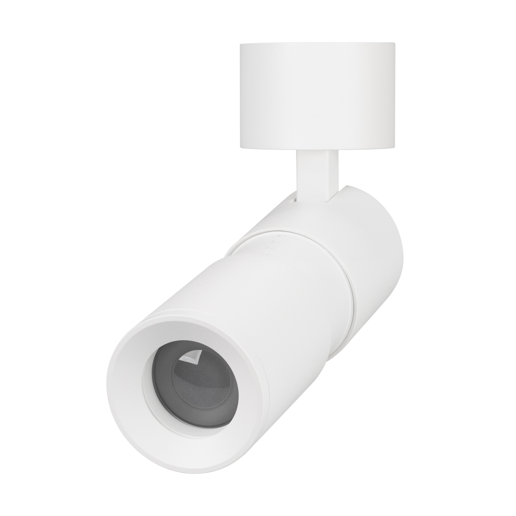 Накладной откидной поворотный светильник, 12Вт. Цвет свечения ТЕПЛЫЙ 3000K, световой поток 720 лм, 60 лм/Вт, регулируемый угол 8-80°, CRI>90. Корпус круглый, металл, цвет белый, IP20. Размеры DxHxL Ø55x132~163,5 мм. Размер чаши Ø60,7x33,5 мм. Входное напряжение AC220-240V, мощность 12Вт. Драйвер встроенный (24-40V, 300 мА). Пульсация <1%.