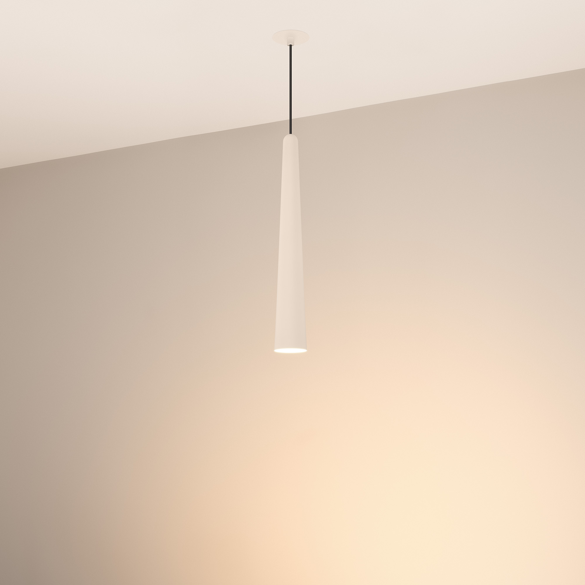Подвесной светильник. Мощность 5 Вт, св. поток 400 лм, световая эффективность 70 лм/Вт, теплый 2700 K, CRI>92, угол 36°, напряжение питания 230 В. Кремовый конусообразный вытянутый корпус из алюминия, линза из PMMA, степень защиты IP20. Размер: диаметр 57 мм, высота 400 мм. Монтаж подвесной, длина подвеса 2000 мм, регулируемая. В комплекте 2 вида чаш. Габариты встраиваемой чаши: Ø 80x41 мм. Габариты накладной чаши Ø80x60 мм. Драйвер 2,8-12В, 500 мА, пульсация <1%.